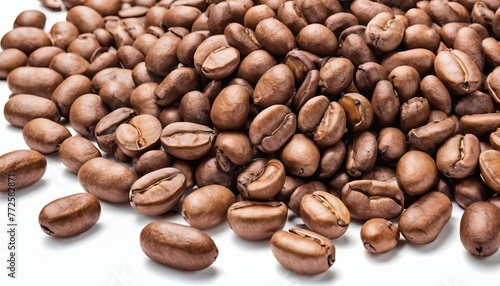 Naklejka premium Aromatic Coffee Beans Pile on Clean White Background