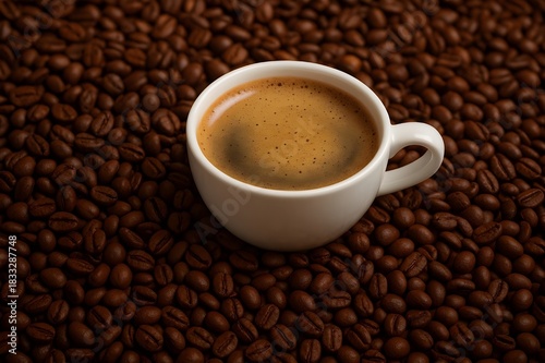 © Sabahat, Fototapeta premium Aromatic Coffee Beans with Steaming Cup