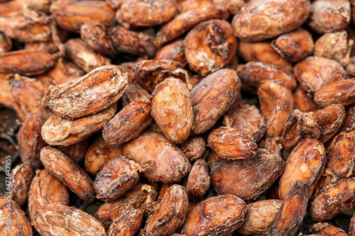 Obraz premium Aromatic dried cocoa beans as background