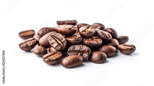 Naklejka premium Aromatic Pile of Coffee Beans - Symbol of Passion for Quality Coffee on White...