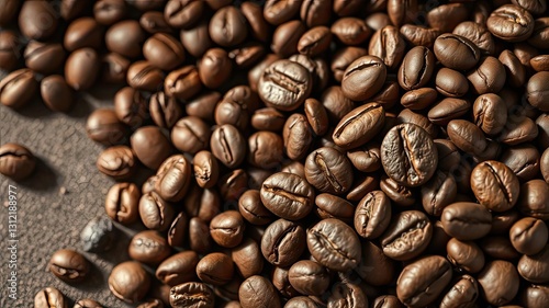 © Ahingska, Fototapeta premium Aromatic Roasted Coffee Beans Dark Brown Close Up