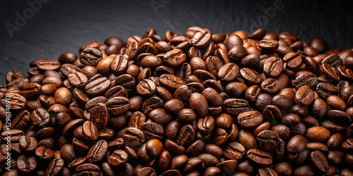 Fototapeta premium Aromatic Roasted Coffee Beans in a Rich Brown Hue, Close-Up View of a Pile of Coffee Beans, Showing Texture and Depth