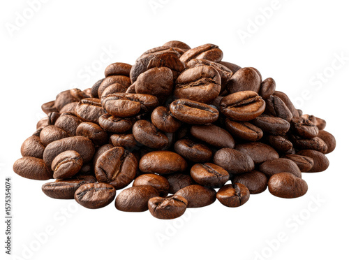 Naklejka premium Aromatic roasted coffee beans rich dark brown pile, On Transparent...