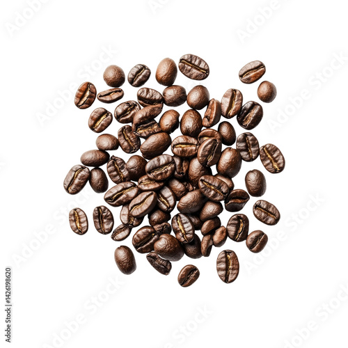 © PicTCoral, Naklejka premium Aromatic Roasted Coffee Beans Scattered on Transparent Background