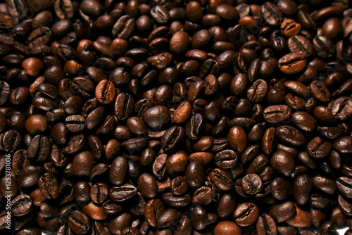 Fototapeta premium Aromatic roasted coffee beans textured background.