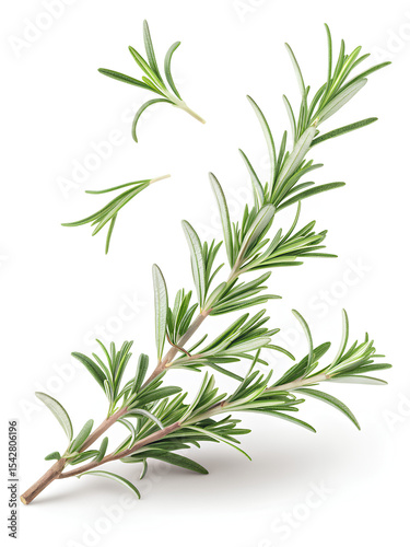 © KingKongThePitbull, Fototapeta premium Aromatic rosemary sprigs and scattered leaves on a white background, ideal for cooking, herbal, or natural wellness themes.