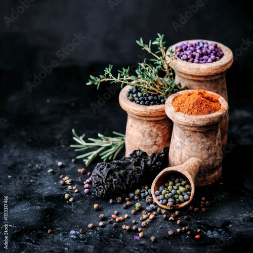© Narongsag, Fototapeta premium Aromatic Spices Herbs Culinary Still Life Photography