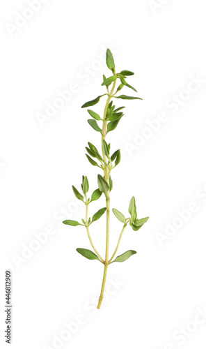 Fototapeta premium Aromatic thyme sprig on white background. Fresh herb