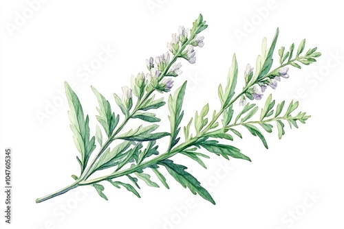Fototapeta premium Aromatic Wormwood Herb Watercolor Illustration for Natural Health Therapy