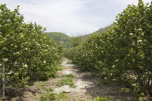 Fototapeta premium Aronia (chokeberries) growing in a field.