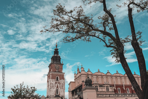 © lu.elm, Fototapeta premium Arquitectura de Polonia. Torres sobre fondo azul.