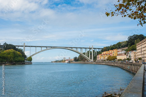 Naklejka premium Arrabida bridge and Douro river in Porto / 自動車専用橋のアラビダ橋とDouro 川