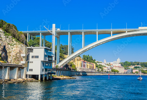 Naklejka premium Arrabida Bridge in Porto Portugal, crossing the Douro River and linking Porto...