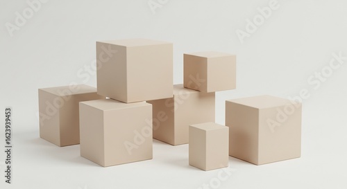 © WIJI, Obraz premium Arrangement of neutral-toned cubic forms on a plain background.