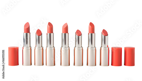 Obraz premium Array of Coral Lipsticks on Transparent Background