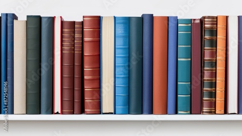 Naklejka premium Array of literature books on a shelf, displaying diverse spine designs,...