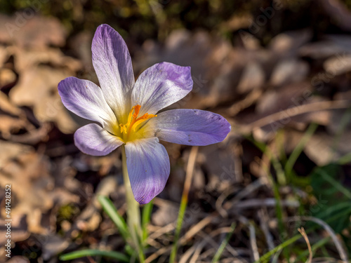 Fototapeta premium Arrival of spring with the first crocuses in the forest, Provence