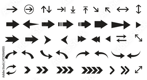 © Koushik, Naklejka premium Arrow icon set collection black direction symbols isolated white background