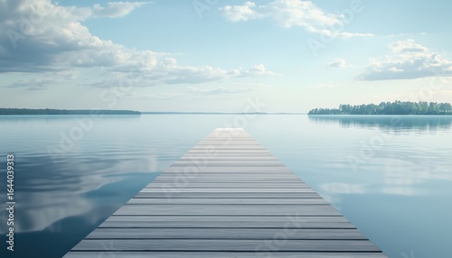 © Ivan, Fototapeta premium Arrow-Lined Pier Extending Towards The Horizon Across The Lake: A Path To Success That Never Ends