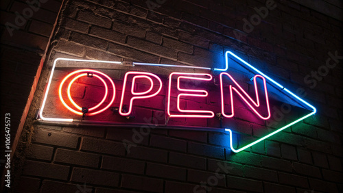 Obraz premium arrow neon light sign open, AI generated