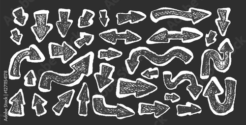 Fototapeta premium Arrow set pencil drawing sticker. Textured effect direction pointers. Black...