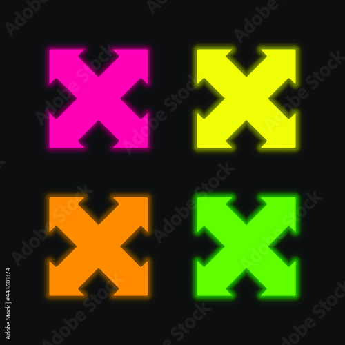 Obraz premium Arrows Cross Pointing Four Directions four color glowing neon vector icon