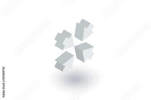 © Hilch, Obraz premium Arrows icons. Arrows in the center isometric flat icon. 3d vector colorful illustration. Pictogram isolated on white background