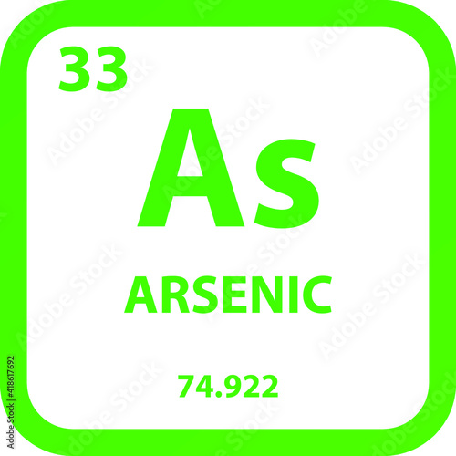 © Basstock, Fototapeta premium Arsenic As Metalloid Chemical Element vector illustration diagram, with atomic number, mass and electron configuration. Simple outline flat design for education, lab, science class.