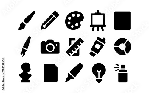 Obraz premium Art and design icon set: tools and supplies in modern silhouette style