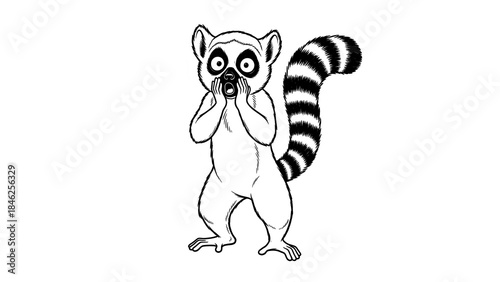 © dwaood, Naklejka premium Art Deco Lemur Character Clasped to Face with a Symmetrical Exclamation Tail Design