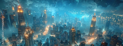 Fototapeta premium Art Deco Metropolis A glamorous city with towering skyscrapers adorned with...