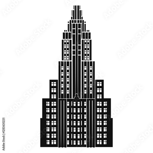 Obraz premium Art deco skyscraper facade architecture illustration silhouette vector