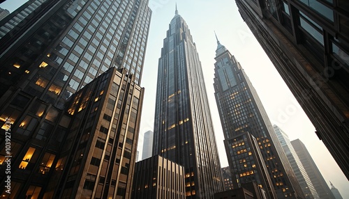 Fototapeta premium Art Deco skyscrapers with metallic and glass textures