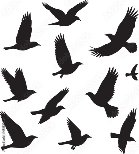 Fototapeta premium Art & Illustration Flying bird silhouette vector pack with multiple wing...
