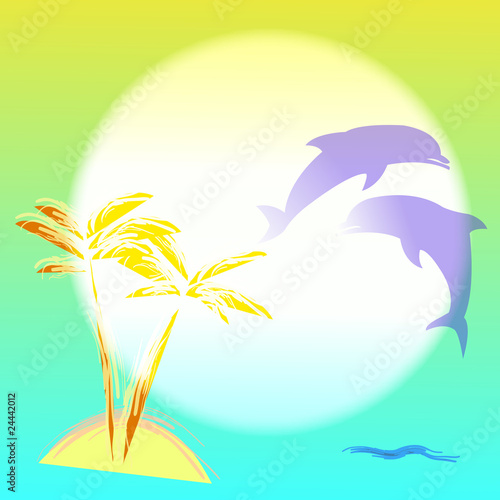 © miluwa, Naklejka premium art illustration with palmtree and dolphins