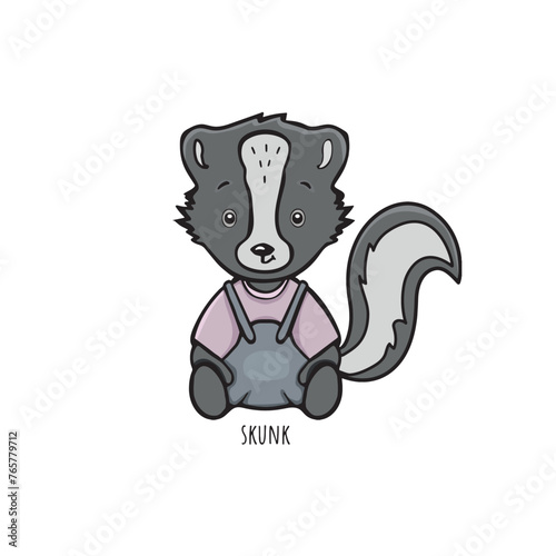 Obraz premium Art & Illustrationbaby skunk sitting on white background vector children's illustration. cartoon skunk vector character