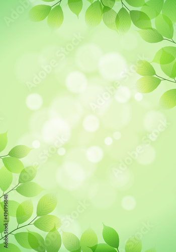 Fototapeta premium 新緑の葉と玉ボケの光のベクターイラスト背景(フレッシュ,コピースペース,art,narural,fresh,green)