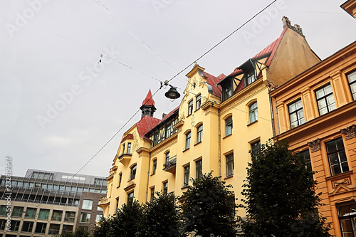 Obraz premium Art Nouveau architecture on a building facade in Riga, Latvia