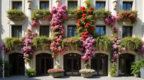 Fototapeta premium Art Nouveau Building Facade with Cascading Floral Waterfall