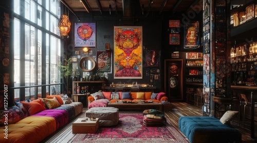 Naklejka premium Art Nouveau loft with bold, eclectic decor.