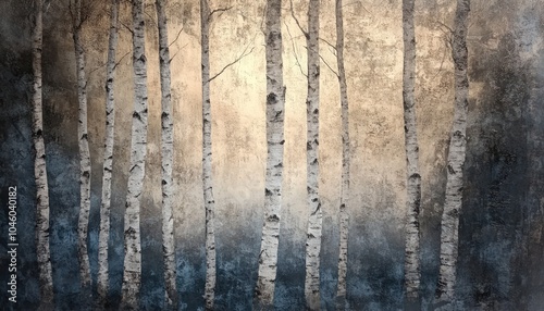 Fototapeta premium Art painted birch trees on a textured background with light and dark tones
