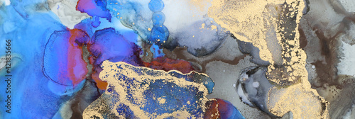Fototapeta premium art photography of abstract fluid art painting with alcohol ink, blue, black and gold colors