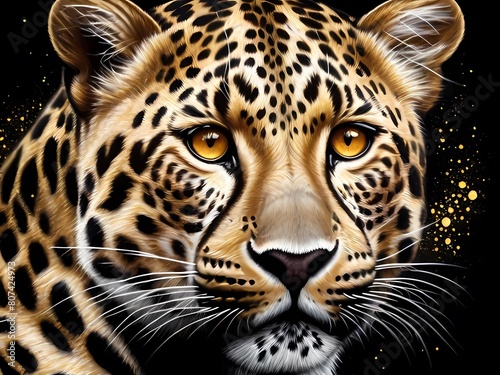 Obraz premium art piece featuring a leopard in gold and white glitter