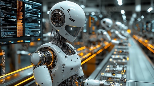 Fototapeta premium art robotic production line, a gleaming tableau of industry and precision. :...
