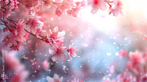 © Mahemud, Fototapeta premium Art Spring border background with pink blossom