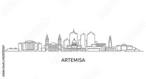Naklejka premium Artemisa Skyline: A minimalist line drawing of the Artemisa, showcasing its unique architectural silhouette, perfect for travel brochures or urban design concepts.
