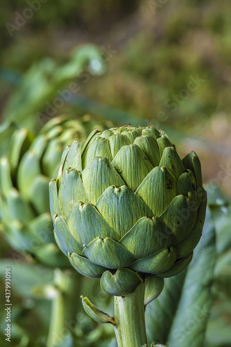 © Premat, Obraz premium Artichoke Flower Bulb Macro Photo From Front Side