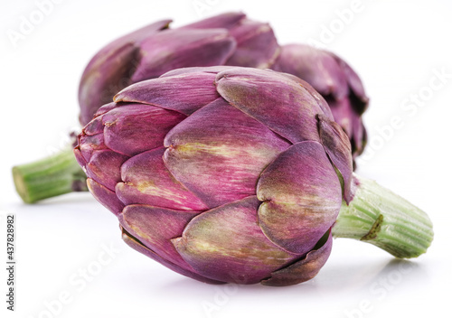 © volff, Obraz premium Artichoke flower, purple edible bud isolated on white background.