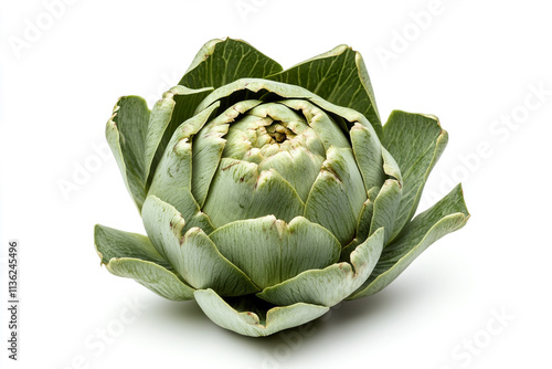 Obraz premium Artichoke with green leaves presented against a white background highlighting...