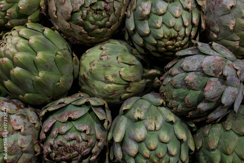 Fototapeta premium Artichokes in the supermarket backdrop